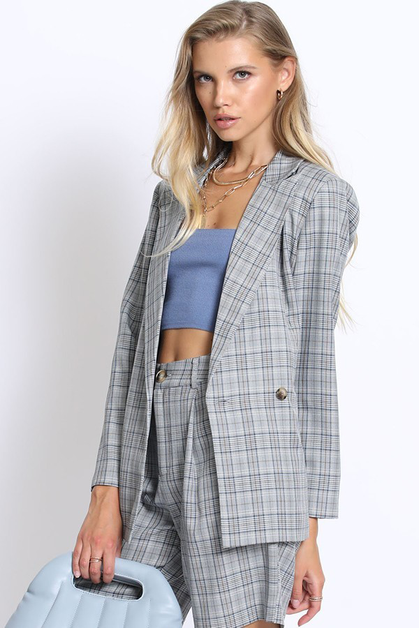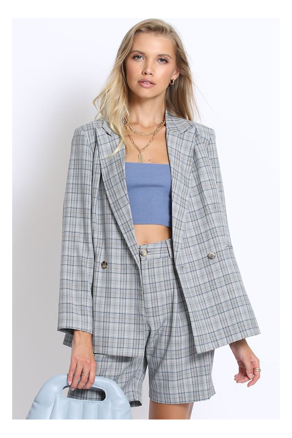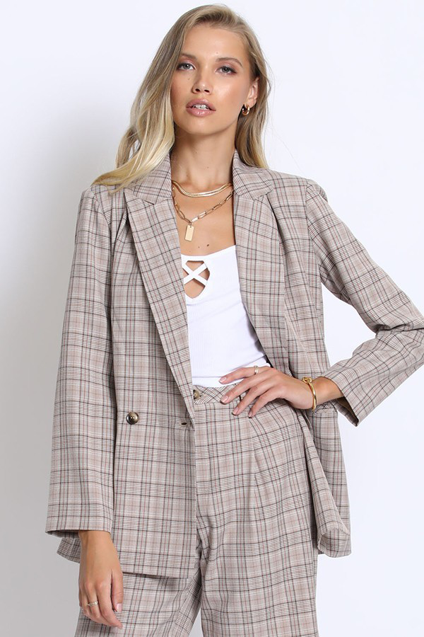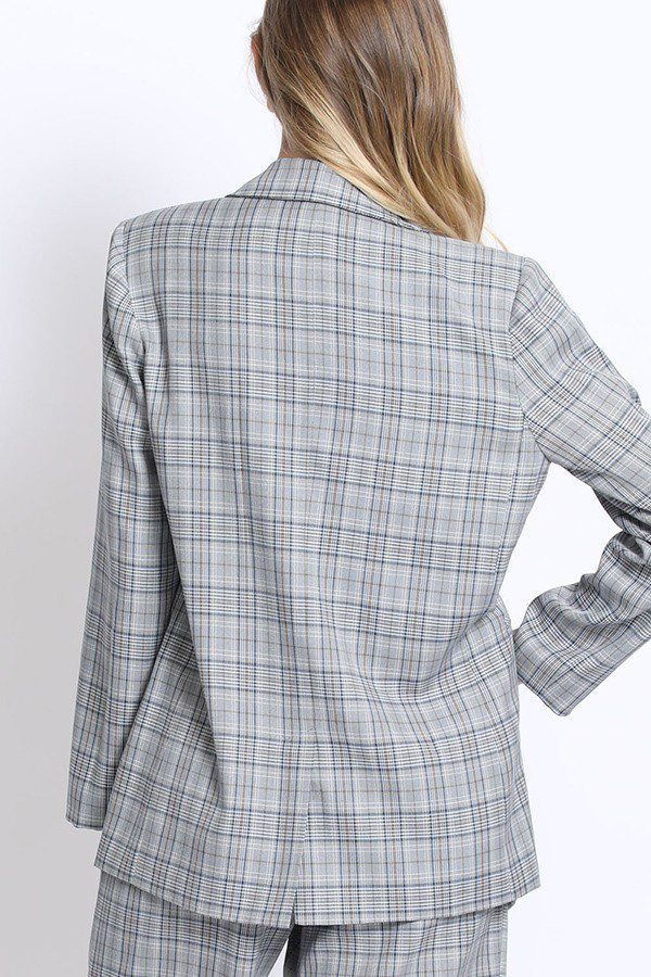 Brown/gold plaid double breasted Notched lapel Single vent jacket